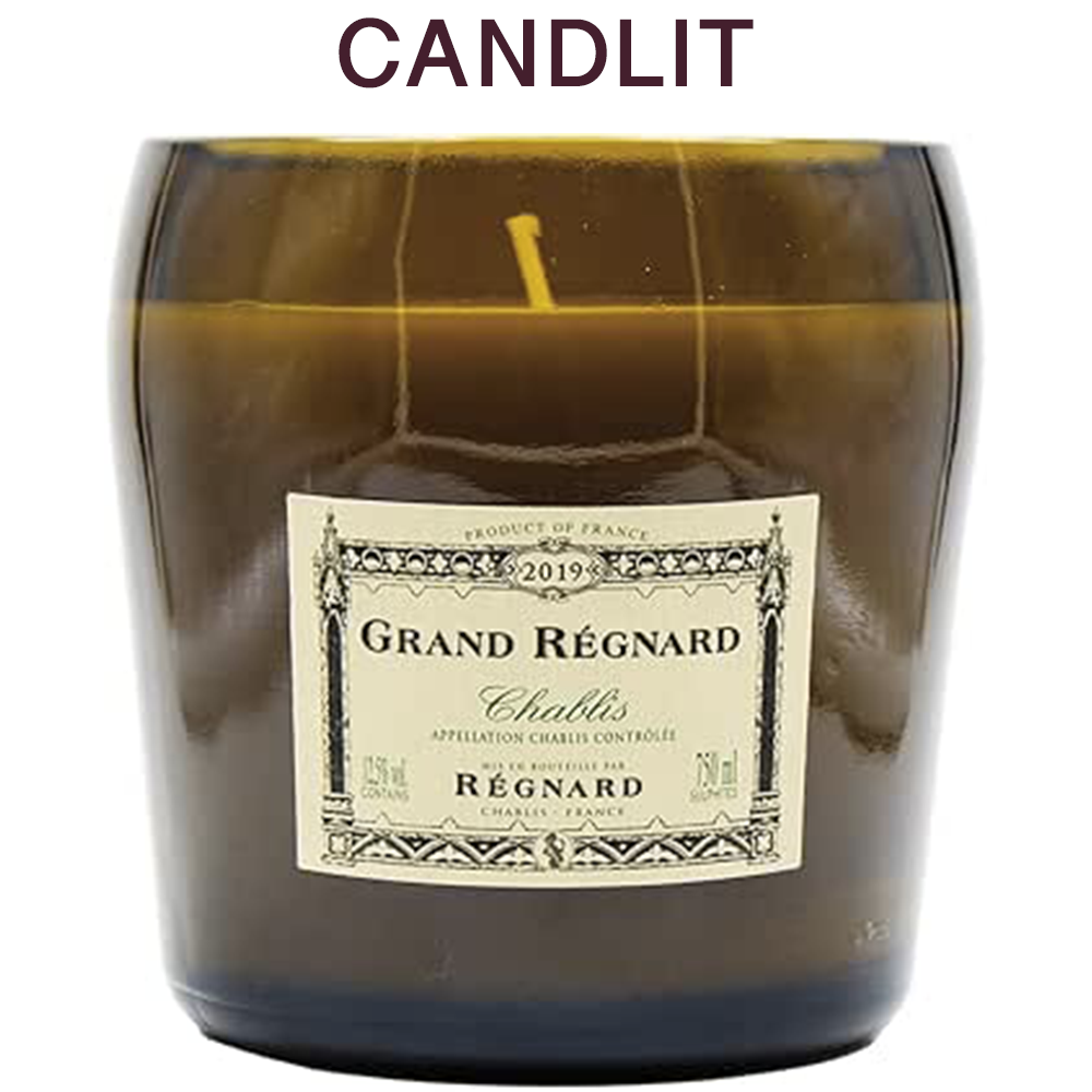 CandlIt è il progetto tutto made in Italy che nasce dalla lunga passione ed esperienza di Vinart per il vino, specializzata da anni nella distribuzione delle migliori etichette d’Europa. Le candele sono ricavate artigianalmente dalle bottiglie dei nostri migliori vini. Ogni pezzo è unico. Per ogni Candlit utilizziamo solo Cera di paraffina raffinata al 100% per uso alimentare ed IDROGENATA, priva di Benzene e di Toluene; per questo le nostre candele sono completamente atossiche, bruciano più lentamente e non rilasciano nell’ambiente sostanze inquinanti che potrebbero nuocere sia al pianeta che alla nostra salute. Lo stoppino è in puro cotone, senza anime di piombo o nailon. La Maison Régnard è una delle realtà vitivinicole più antiche e più prestigiose di tutta la Borgogna francese, con etichette caratterizzate da grande eleganza.