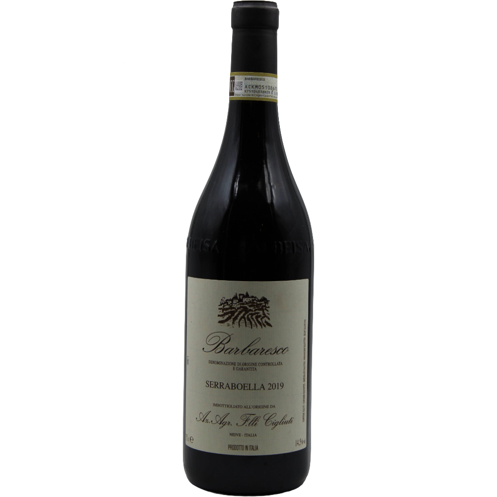 cigliuti barbaresco serraboella 2019 docg nasce da uve nebbiolo provenienti dallo storico cru serraboella di neive uno dei più vocati della denominazione su suoli calcareo-marnosi e con esposizione sud-ovest vinificazione tradizionale con lunga macerazione sulle bucce e affinamento di circa 30 mesi in botti grandi di rovere seguito da riposo in bottiglia colore granato brillante profumo profondo e complesso con note di ciliegia matura viola rosa appassita tabacco e spezie dolci al palato è elegante e strutturato con tannini fini acidità viva e lunga persistenza minerale vino di grande equilibrio e personalità destinato a lunga evoluzione ideale con brasati arrosti selvaggina e formaggi stagionati temperatura di servizio 18 °c