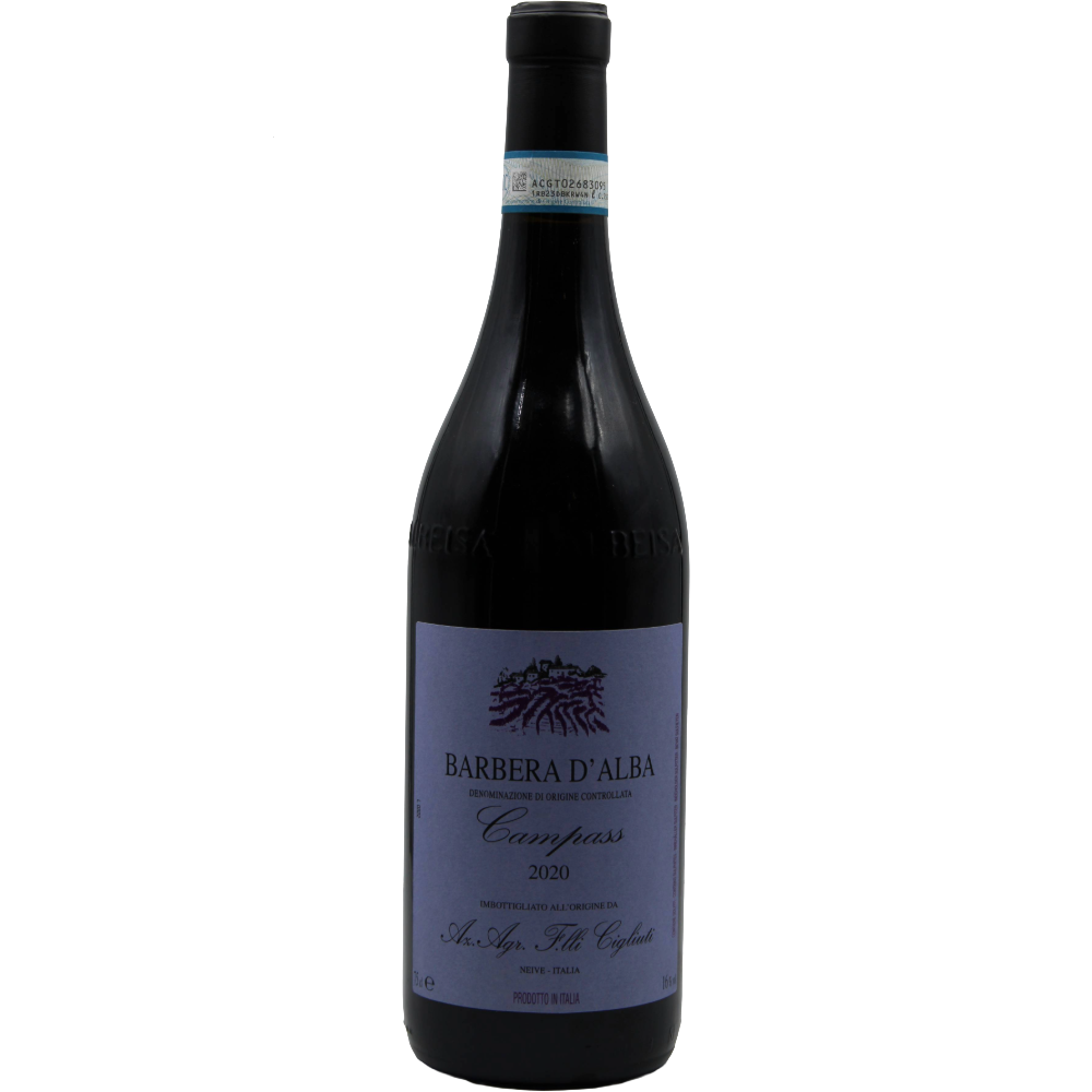 cigliuti barbera d’alba campass 2020 doc nasce da uve barbera provenienti dal vigneto campass situato a neive nel cuore delle langhe vinificazione tradizionale con macerazione sulle bucce di circa 15 giorni e affinamento per 18 mesi in barrique di rovere francese colore rosso rubino intenso con riflessi violacei profumo ampio e complesso con note di ciliegia matura mora prugna e spezie dolci con leggere sfumature tostate al palato è pieno e armonico con acidità vivace tannino fine e finale lungo e avvolgente vino di grande eleganza e struttura ideale con primi piatti saporiti carni rosse e formaggi stagionati temperatura di servizio 16-18 °c