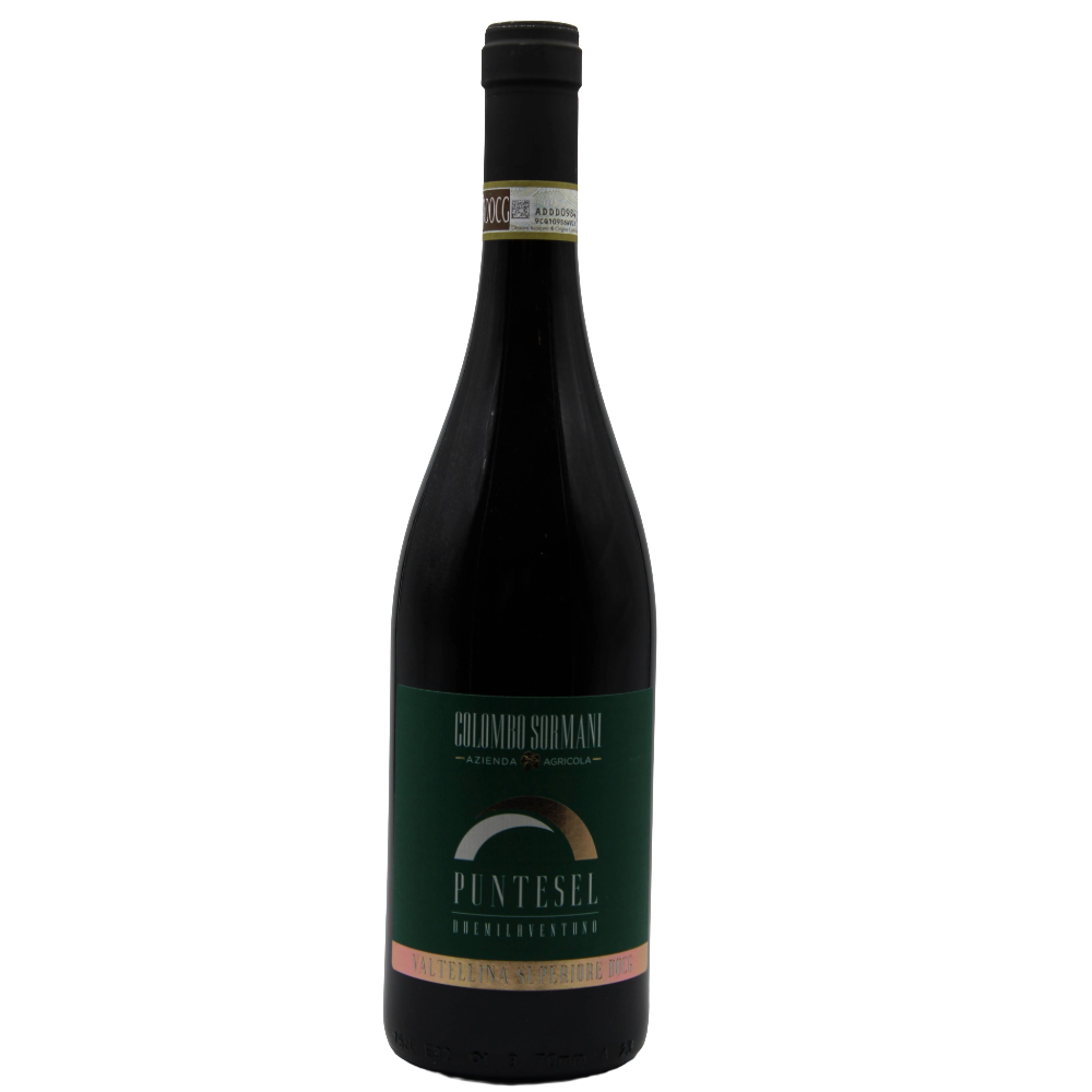 Il Colombo Sormani Puntesel Valtellina Superiore DOCG 2021 è un rosso elegante e artigianale ottenuto da uve Nebbiolo (Chiavennasca) coltivate sui terrazzamenti valtellinesi. Dopo la fermentazione con lunga macerazione, affina per dodici mesi in botti di rovere francese e di Slavonia. Si presenta con colore granato brillante dai riflessi rubino; al naso offre aromi raffinati di piccoli frutti rossi, ciliegia matura, mora e sfumature floreali, arricchite da note speziate e minerali tipiche del territorio. Al palato è equilibrato e armonico, con tannini fini, acidità viva e un finale persistente che richiama frutta e spezie. Vino di produzione limitata, esprime autenticità e carattere della Valtellina. Ideale in abbinamento con arrosti, brasati, selvaggina e formaggi stagionati, va servito a 16-18 °C e può essere decantato per esprimerne al meglio la complessità