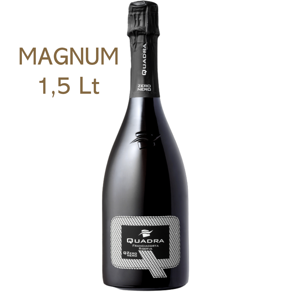 Il formato Magnum (1,5 litri) per il Blanc de Noir Dosage Zero Riserva 2018 di Quadra rappresenta l'apice della produzione aziendale. In questo formato generoso, il Pinot Nero vinificato in bianco trova l'ambiente ideale per una maturazione ancora più lenta e armoniosa, esaltando la struttura poderosa e la raffinata tessitura aromatica che solo una Riserva di lungo affinamento può offrire.