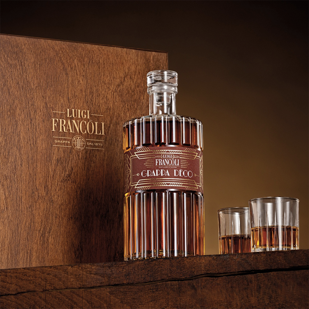 Francoli Grappa Decò è una grappa elegante e di forte identità visiva e sensoriale, creata dalla storica Distilleria Francoli, tra i riferimenti assoluti dell’arte distillatoria italiana. Prodotta da vinacce selezionate e affinata in legni pregiati, esprime un perfetto equilibrio tra morbidezza, complessità aromatica e carattere contemporaneo.