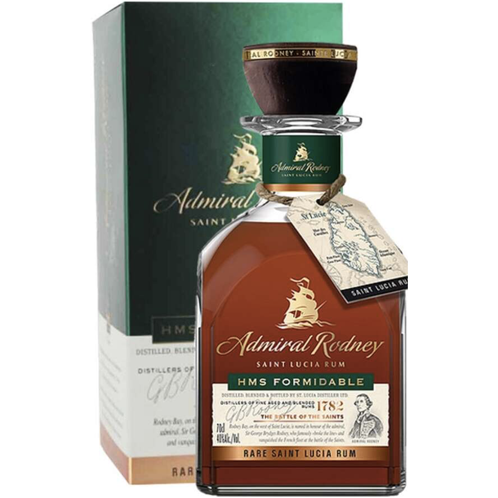 Il Admiral Rodney HMS Formidable è un rum di grande struttura e complessità, prodotto sull’isola di Saint Lucia e dedicato alla nave ammiraglia dell’ammiraglio George Rodney. Rappresenta una delle espressioni più intense e mature della gamma, pensata per un pubblico di appassionati e intenditori.