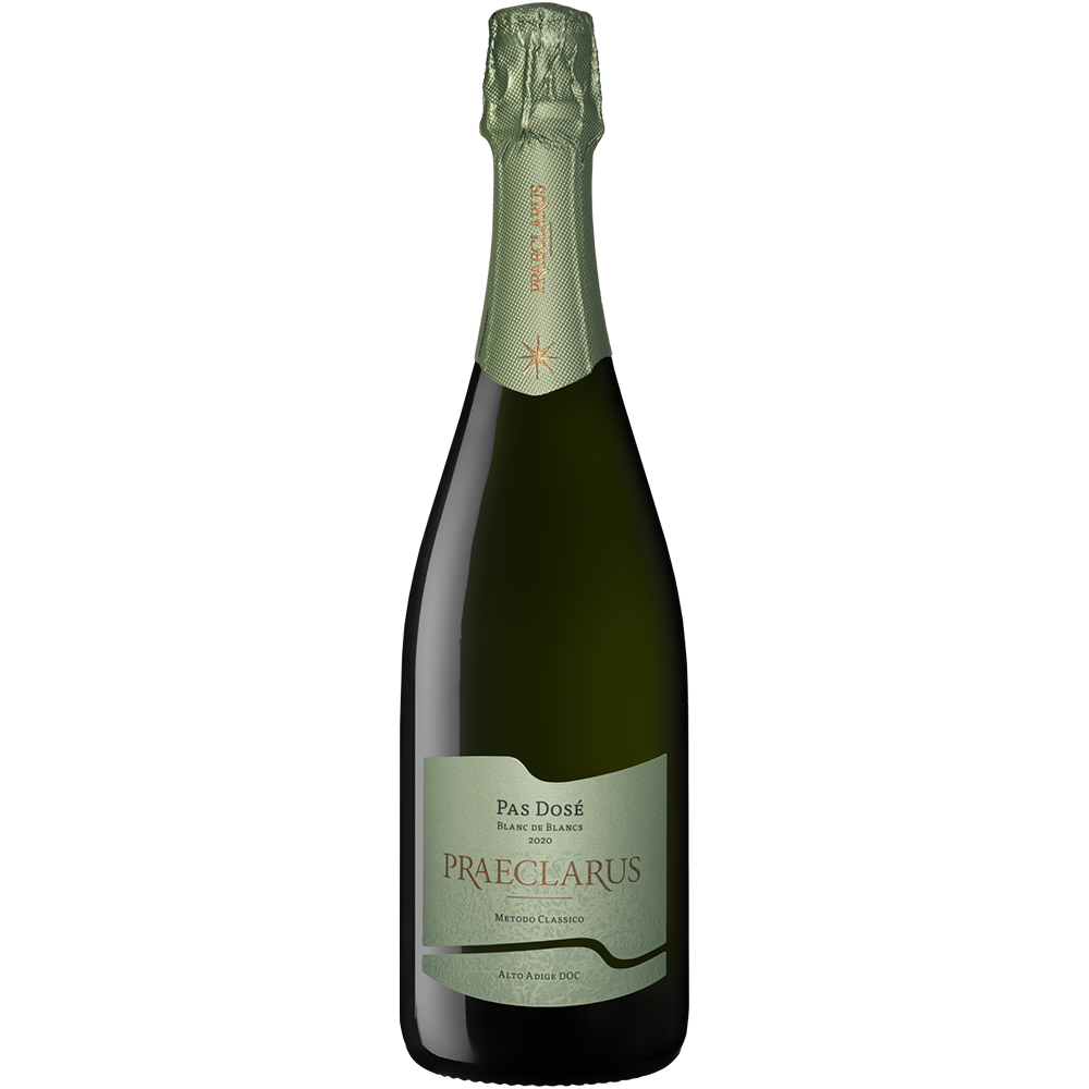 Il Praeclarus Pas Dosé 2020 è un Metodo Classico di estrema franchezza e rigore. Prodotto esclusivamente con uve Chardonnay selezionate dai vigneti più alti e ventilati di San Paolo, questo spumante è pensato per chi ricerca l'essenza autentica della bollicina alpina. L'annata 2020 ha regalato uve dotate di una spiccata acidità e di un corredo aromatico finissimo, che il lungo affinamento sui lieviti ha saputo trasformare in una struttura complessa e vibrante. È un vino d'élite, dritto e sapido, che non scende a compromessi con la dolcezza, puntando tutto su una mineralità tagliente e una persistenza infinita.