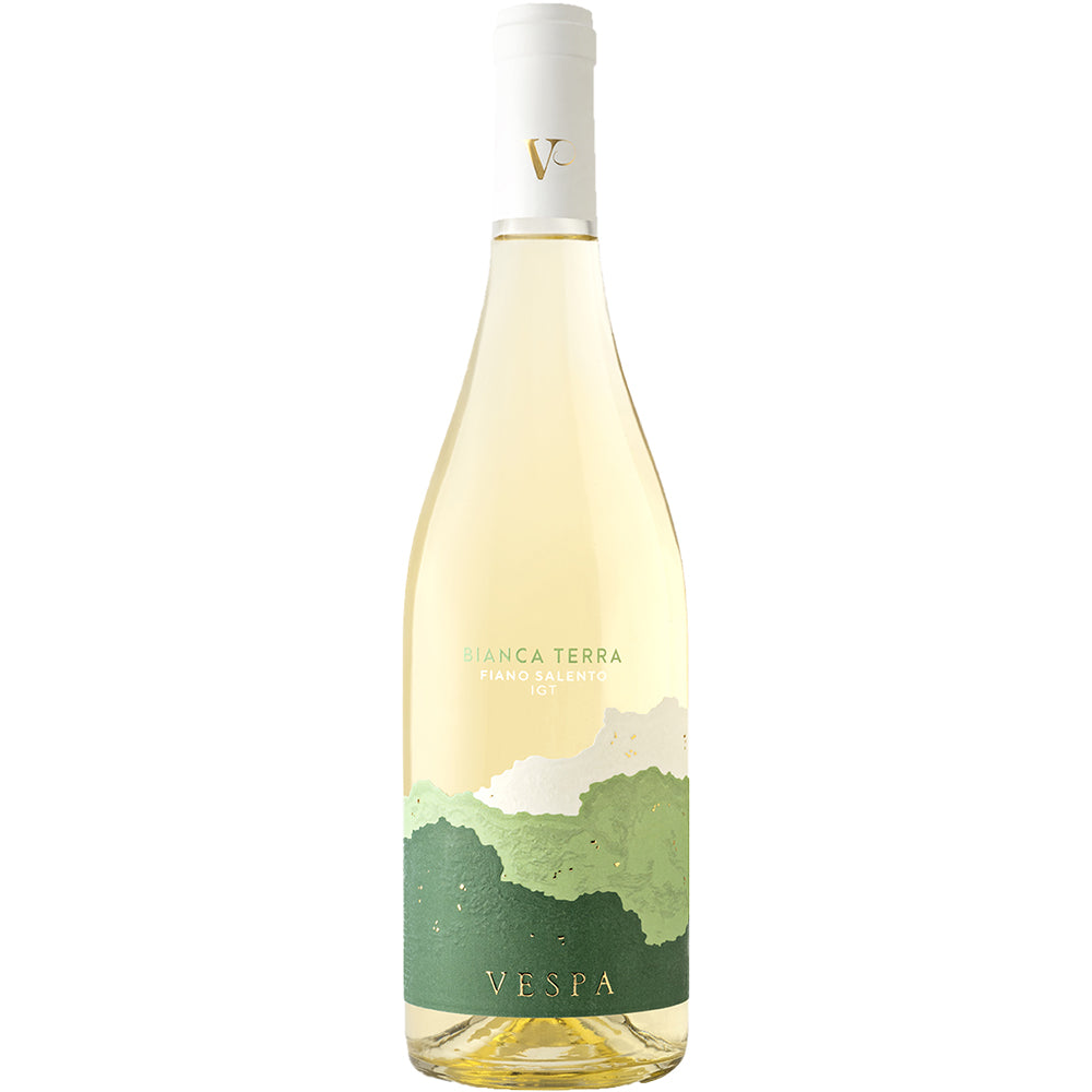 Il Fiano del Salento “Bianca Terra” 2023 della cantina Vespa nasce in Puglia, da vigneti baciati dal sole e accarezzati dalle brezze del mare Ionio. Questo bianco interpreta il Fiano con freschezza mediterranea e carattere contemporaneo, restituendo nel calice tutta la luminosità del territorio salentino.