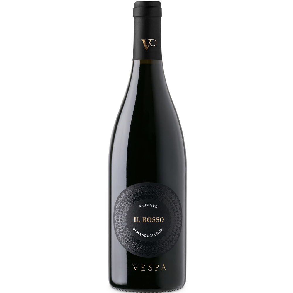 Il Primitivo di Manduria “Il Rosso” 2022 della cantina Vespa nasce nel cuore del Salento, da vigneti di Primitivo coltivati su suoli calcarei e argillosi, baciati dal sole e mitigati dalle brezze marine. È un vino che interpreta la tradizione pugliese con stile moderno, unendo intensità e immediatezza.
